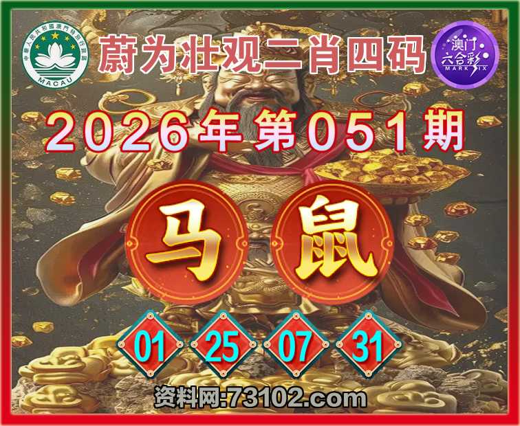 051期:『蔚为壮观』 🍔二肖四码🍔【马鼠】【01.25.07.31】开:马01准彩民验证
