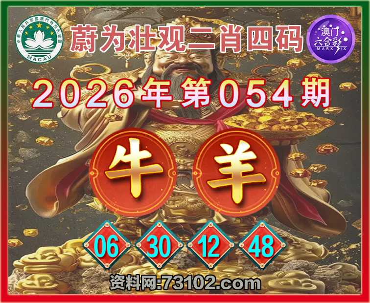 054期:『蔚为壮观』 🍔二肖四码🍔【牛羊】【06.30.12.48】开:羊48准彩民验证