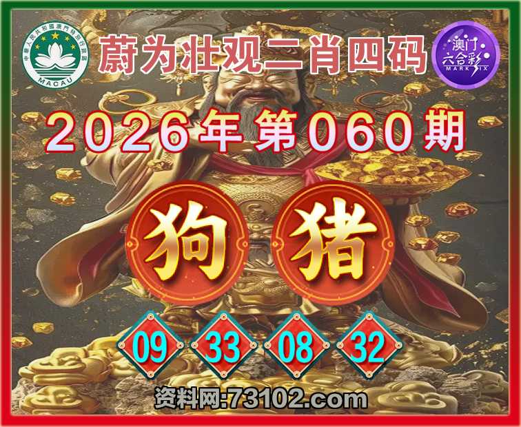 060期:『蔚为壮观』 🍔二肖四码🍔【狗猪】【09.33.08.32】开:狗09准彩民验证