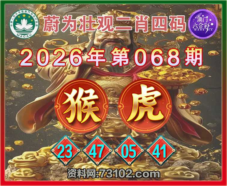 068期:『蔚为壮观』 🍔二肖四码🍔【猴虎】【23.47.05.41】开:猴23准彩民验证
