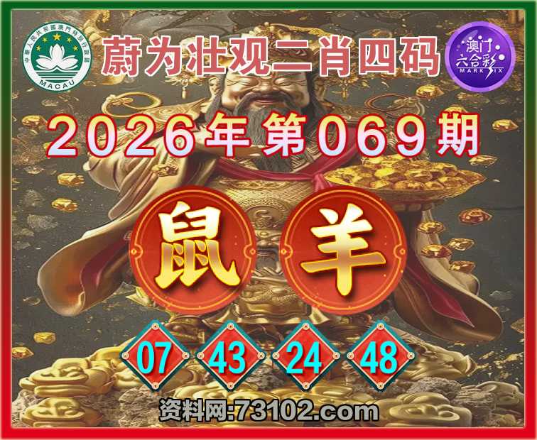 069期:『蔚为壮观』 🍔二肖四码🍔【鼠羊】【07.43.24.48】开:羊24准彩民验证