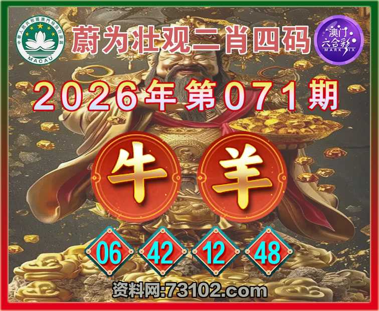 071期:『蔚为壮观』 🍔二肖四码🍔【牛羊】【06.42.12.48】开:羊48准彩民验证