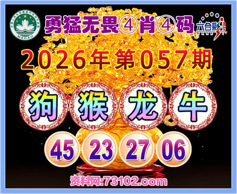 057期:『勇猛无畏』 🥬④肖④码🥬【狗猴龙牛】【45.23.27.06】开:猴23准