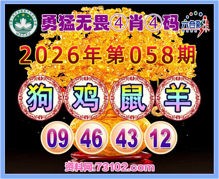 058期:『勇猛无畏』 🥬④肖④码🥬【狗鸡鼠羊】【09.46.43.12】开:鼠31准