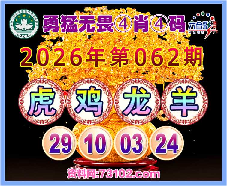 062期:『勇猛无畏』 🥬④肖④码🥬【虎鸡龙羊】【29.10.03.24】开:羊24准